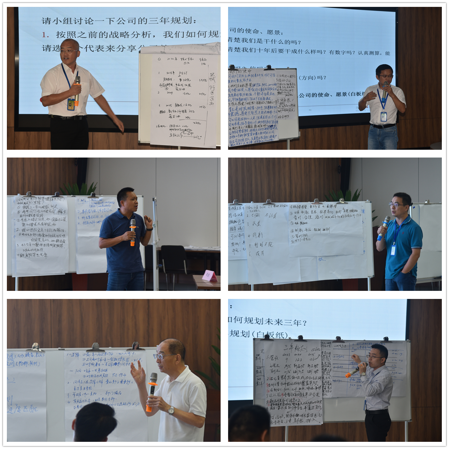 在每一个模块,黄震老师都会要求各小组积极讨论,并选派代表阐述自己小组的讨论结果。制定明确的战略和规划,树立正面价值观,凝聚团结力,实现使命和愿景,让公司攀上新高度,让员工得到自我价值的实现。