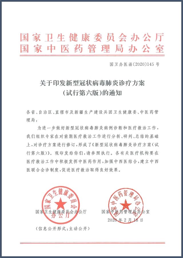 新型冠状病毒感染肺炎诊疗方案试行第六版