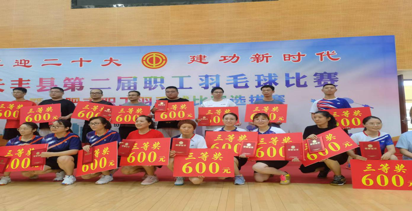 2022年7月20日上午,长丰县第二届职工羽毛球赛开幕式在县体育馆如期举行,合肥时博·体育_时博shibo(中国)工会主席钟方成,带领工会委员会成员,以及时博·体育_时博shibo(中国)营销部门、财务部门、行政部门参加本次开幕式。